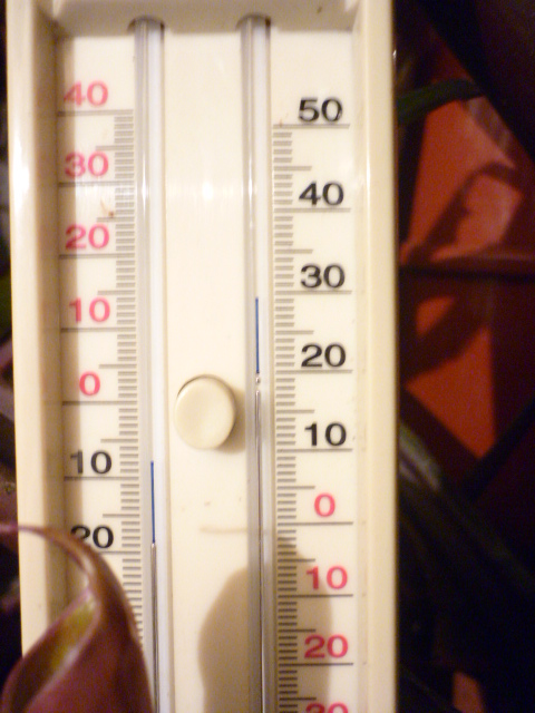 Dat kreng blijft bij mij ook maar doorgroeien, net als de rest van de bananen. Misschien hebben ze nog genoeg reserves? De temperatuur schommelt bij mij ook rond de 12 - 13 graden, 's nachts iets koeler, dat is volgens mij prima hoor!