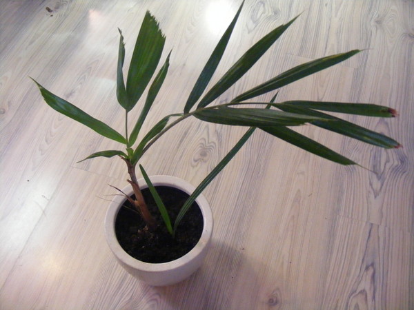 In het voorjaar oppotten in een wat hogere pot met speciale palmgrond. Ben benieuwd!