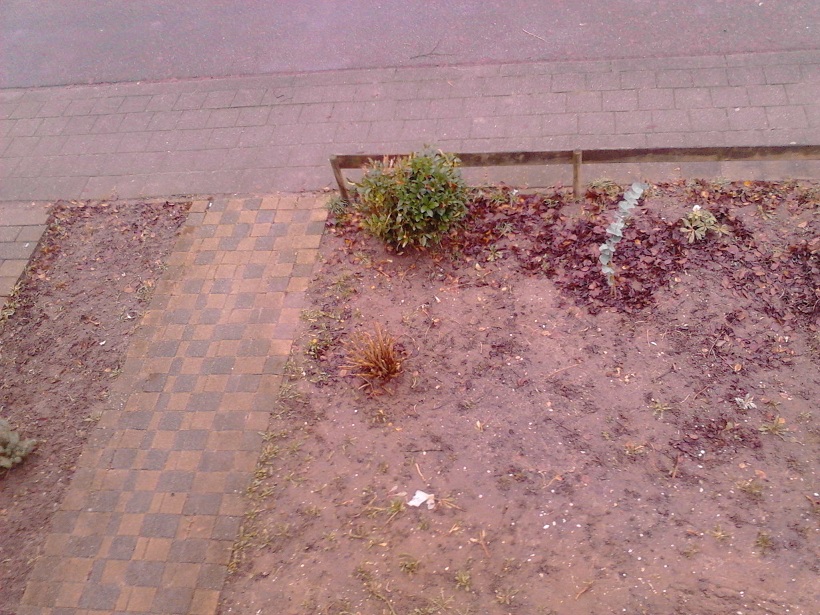 Dan nog het stukje tuin tussen de berging, het huis en de buren.