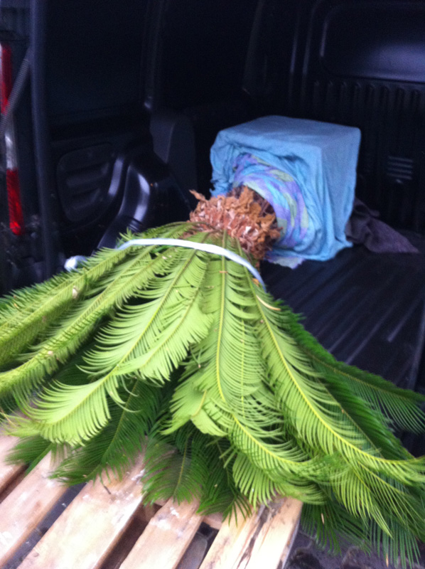 Ik wilde ze eerst allebei meenemen (20 euro per stuk), maar naast de grote cycas paste er slechts eentje in mijn auto.