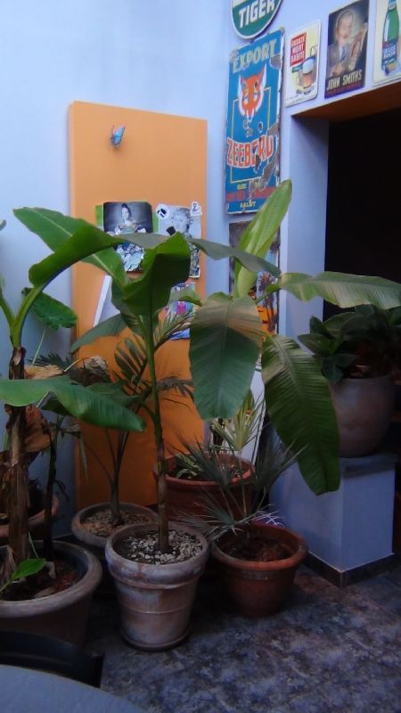 hier in de veranda gaat het nog .... in mijn bergplaats kan ik niet meer binnen , ik had nog voor de winter een 3 stammen trachy gekocht om in de volle grond te zetten