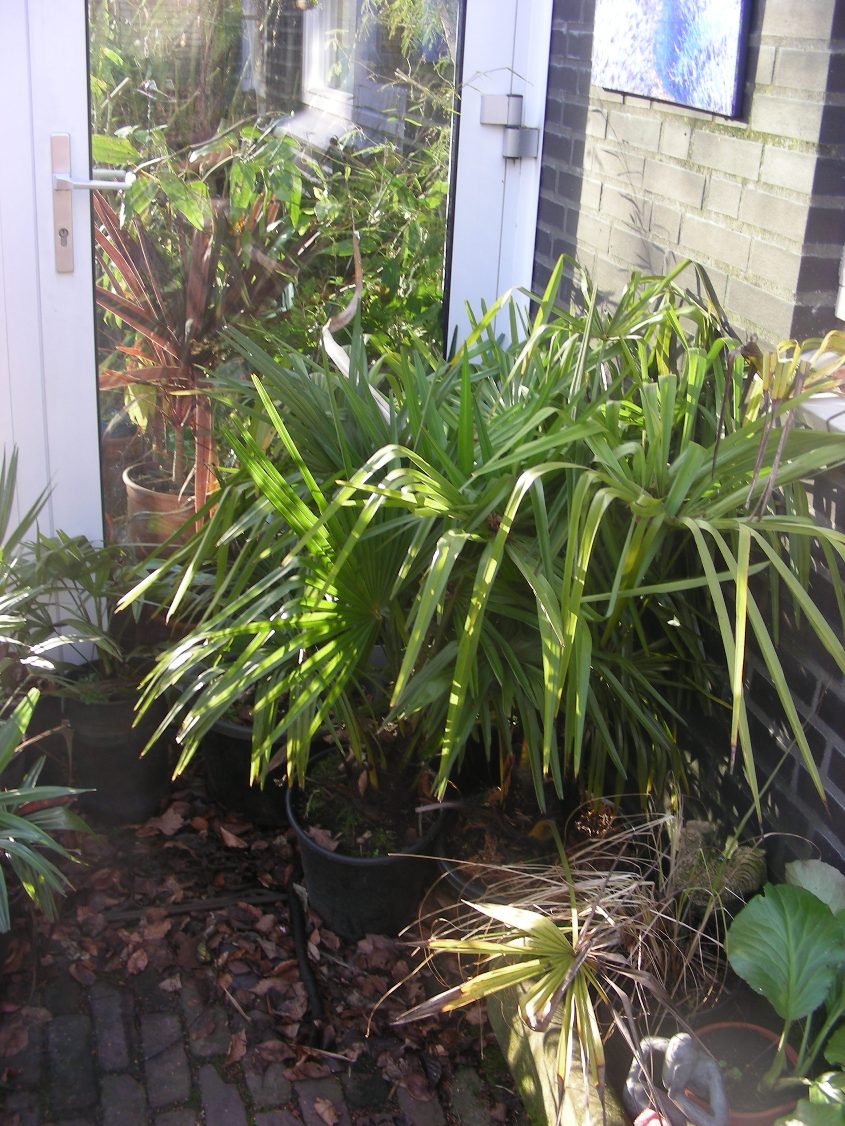 Toch moet ik zeggen dat de palmen er ooit beter hebben uit gezien als tegenwoordig. Van de 3 grootte palmen die in de tuin staan zijn er 2 bijna kaal en 1 ziet er nog redelijk goed uit.