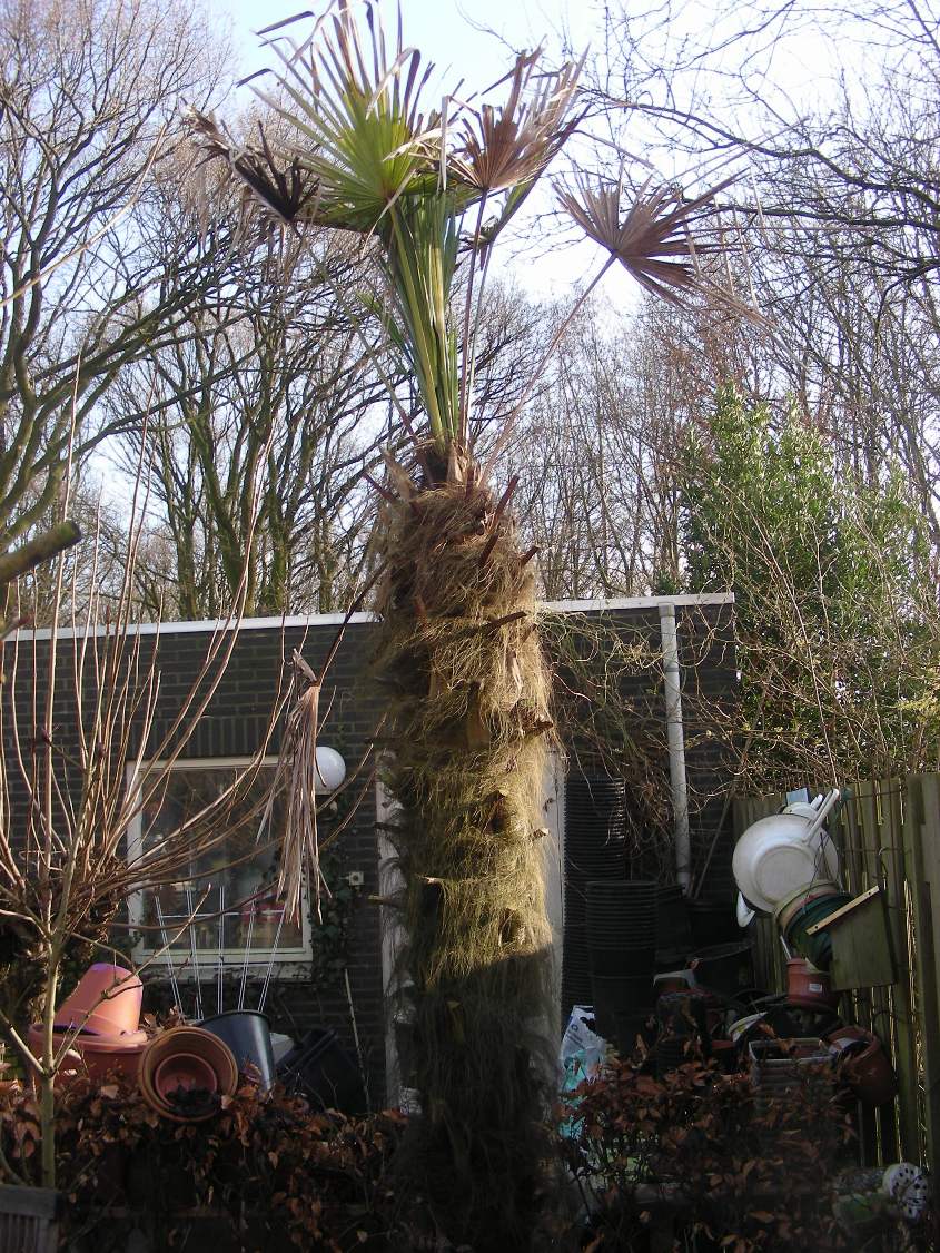Toch moet ik zeggen dat de palmen er ooit beter hebben uit gezien als tegenwoordig. Van de 3 grootte palmen die in de tuin staan zijn er 2 bijna kaal en 1 ziet er nog redelijk goed uit.