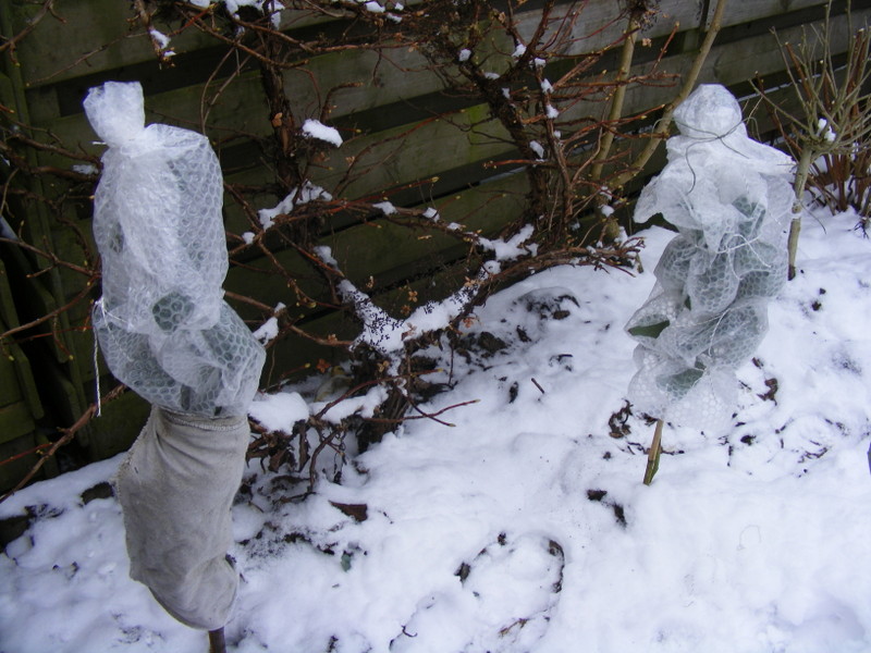 Vandaag ook even foto's gemaakt van mijn winterbescherming. Tot nu toe valt het mij heel erg mee hoe de palmen er buiten in de volle grond uit zien. Bij vorige sneeuw wat ook rond het 0 graden was zagen de palmen er slechter uit en dat was nog met minder vorst. Toen heb ik ook geen bescherming geplaatst.