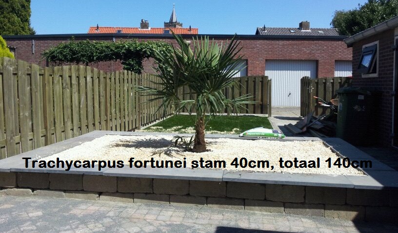 Zie foto van een zelfgekweekte palm, Trachycarpus fortunei (staat nu in Zeeland bij iemand in zijn tuin), deze heb ik verkocht aan hem. Zeer mooi (dubbel stammetje)