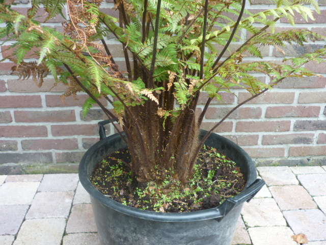 hallo , vandaag heb ik al de boomvarens uit de grond gehaald (die staan met pot en al in de grond) de brouwnie geeft een grootte sprong voorwaars gemaakt bij de antartica was de waaier dit jaar maar klein en sober ,meschien is hij aan verplanting toe in een grotere pot de medularisen doen het ook goed dit jaar hopelijk krijg ik ze terug door de winter :thumb_up: