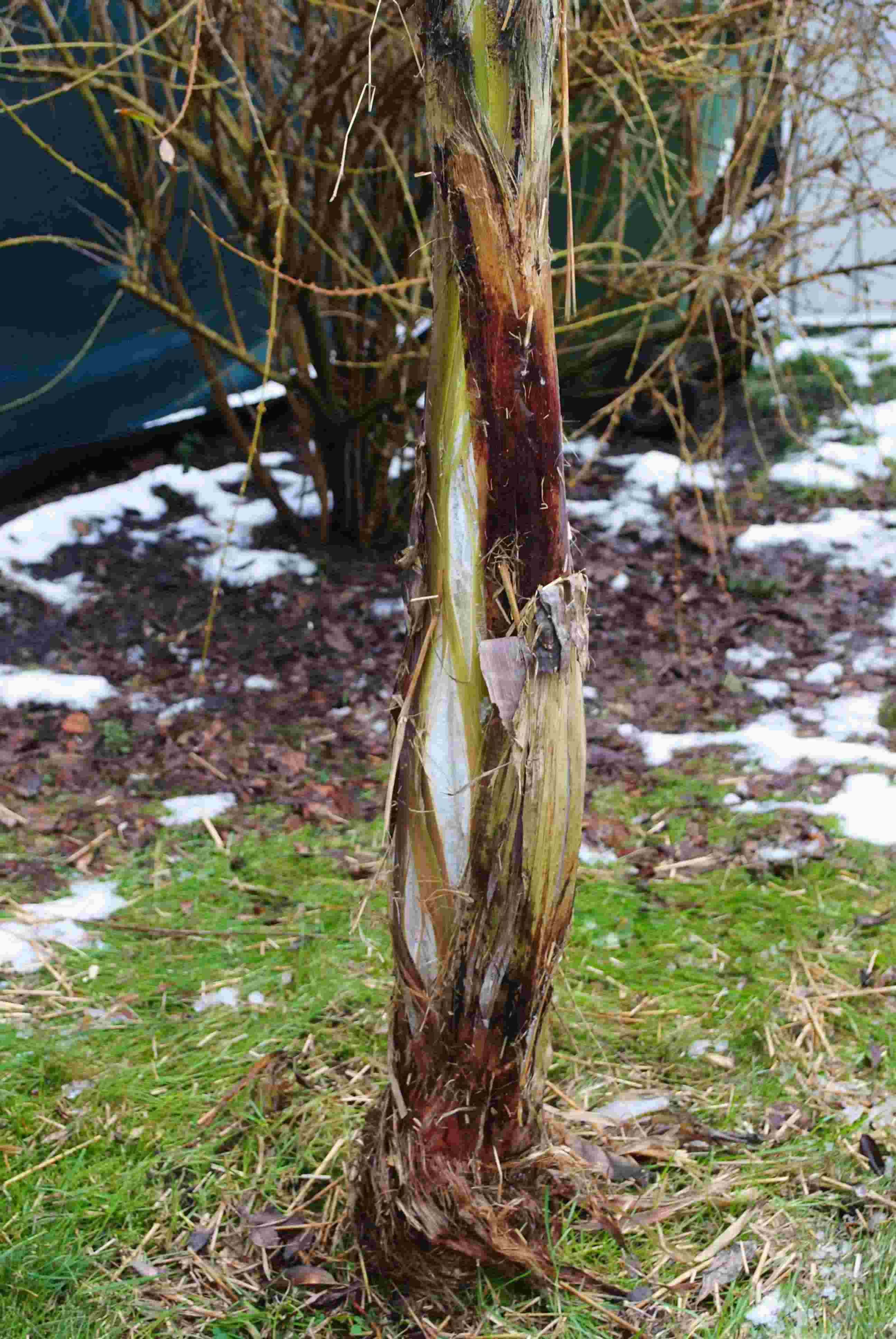 hallo davy,wat zonde van die mooie stam,ja dit heb ik ook wel meegemaakt hoor,maar de banaan is wel sterk,hij komt zeker in de lente weer op,alleen kan je weer van voor af aan beginnen ,ik vraag me af hoe je bescherming eruit gezien heeft ? hij was wel goed gepakt door de vorst,hier heb ik juist vandaag zijn jasje uit getrokken,maar is nog altijd beschermt (hopelijk was het goed beschermt ),ik had er een doorgesneden matras om gewickeld,eerst jutte ,dan die matras,en wat afscherming van plastic tegen de regen en sneeuw,maar toen de vorst echt hier aan de kust kwam opzetten ,heb ik weer een laag matras om gewickeld en daar over weer wat noppevolie,nu is hij weer uitgepakt tot de eerste bescherming,wandt ja de winter is nog niet voorbij,maar ik begin wel me twijfels te krijgen nu ik jou basjo er zo bij zie staan,gelukkig heb ik nog op zolder 3 stammen staan als bacub,en die groeien gewoon door?,we zullen zien als februarie goed weer aan geeft en we al over de helft heen zijn zal ik het helemaal uitpakken,en dan hopelijk wat meer geluk,m.v.g. paul