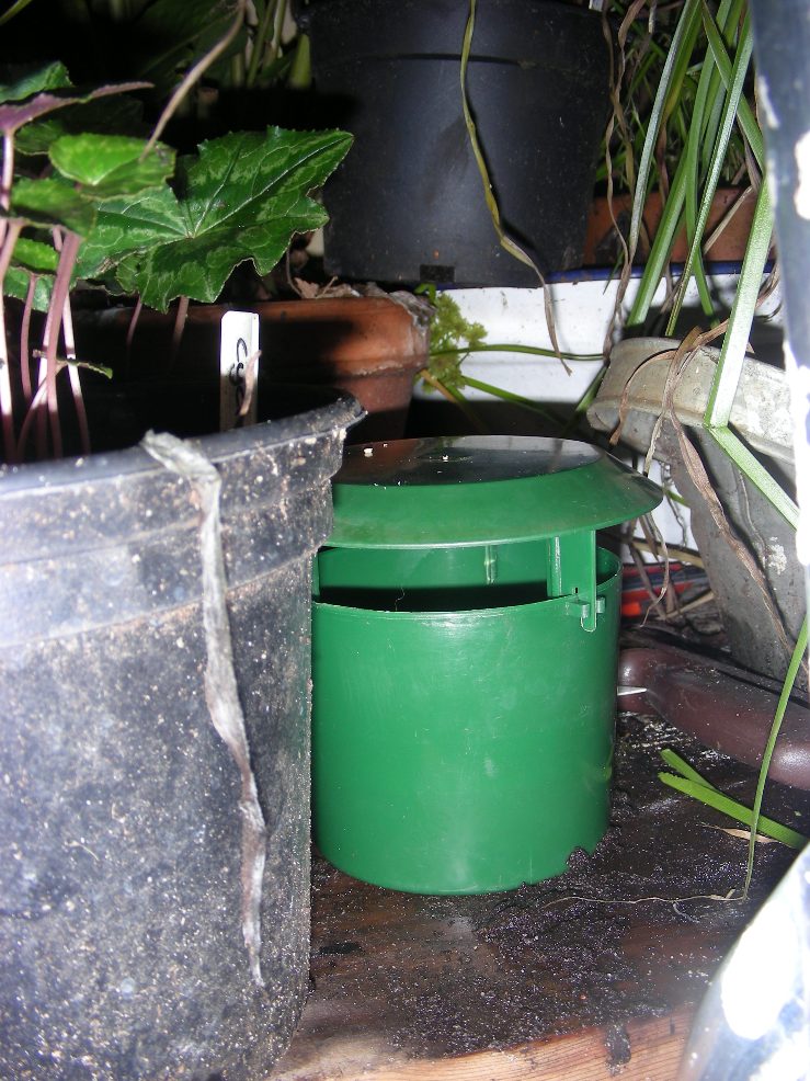 Ook heb ik een andere val geplaatst met lokstof, kijken wat het beste werkt.