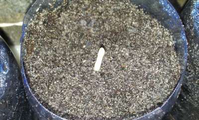 Je ziet het worteltje ook al helemaal onderin het flesje.