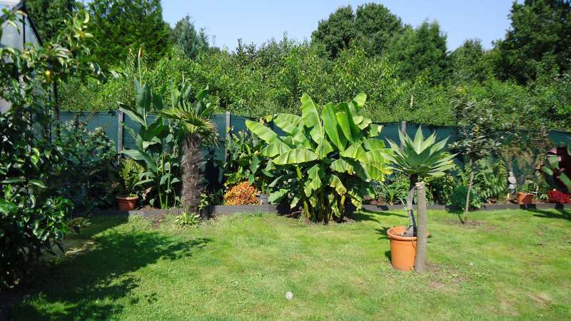 Oh zeg bedankt voor de toffe reacties! Het is eigenlijk de eerste keer dat ik mijn tuin aan andere exotenliefhebbers laat zien omdat ik het zelf nog niet echt de moeite vind omdat het nog zo'n jonge tuin is met nog voornamelijk kleine planten. Toen ik begon met deze tuin in 2006 was ik nog heel naief omdat de winters al een tijdje zo zacht waren ging ik er toen van uit dat het allemaal kon en kocht ik gelijk allemaal flinke formaatpalmen aan van alle soorten die hier zogezegd zouden gaan. Dat kostte me toen 4000 euro en jawel hoor na de eerste winter was ik gelijk alles kwijt waar ik dus een flinke kater aan overhield en flink gedesulisioneerd was. Het jaar daarop probeerde ik het dan met kleinere palmen opnieuw en wederom kreeg ik op mijn donder door alweer zo'n winter. Toen ben ik eigenlijk begonnen met me meer op kuipplanten te focussen en wat in de tuin kwam moest tegen onze echte winters kunnen. Hierdoor viel er een aanzienlijk aantal planten weg. Het is verschrikkelijk jammer dat ik al die foto's uit de eerste jaren kwijt ben door pc crash.