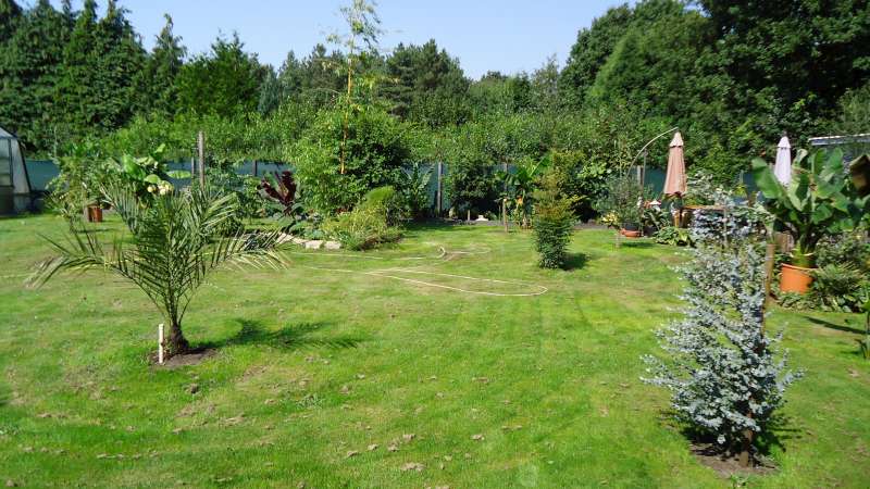 De tuin is nog helemaal niet klaar, er moet bijvoorbeeld nog een vijver in komen en volgend voorjaar ga ik dan weer meer palmen aanplanten die momenteel in de serre overwinteren. Deze gaan dan verwarmd worden 's winters.
