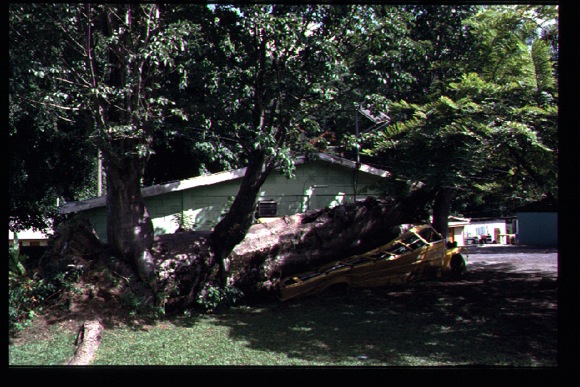 De situatie op het eiland Dominica was in 1991 toen wij daar waren in zoverre ongewoon, omdat de natuur nog steeds niet volledig was hersteld van een allesvernietigende categorie 5 orkaan David (...) in 1979. In het middelhoge berggebied zag je nog overal de met epiphyten begroeide restanten van afgeknapte bomen. Nabij de botanische tuin van Roseau was een stadsbus geplet onder een omgevallen boomreus.