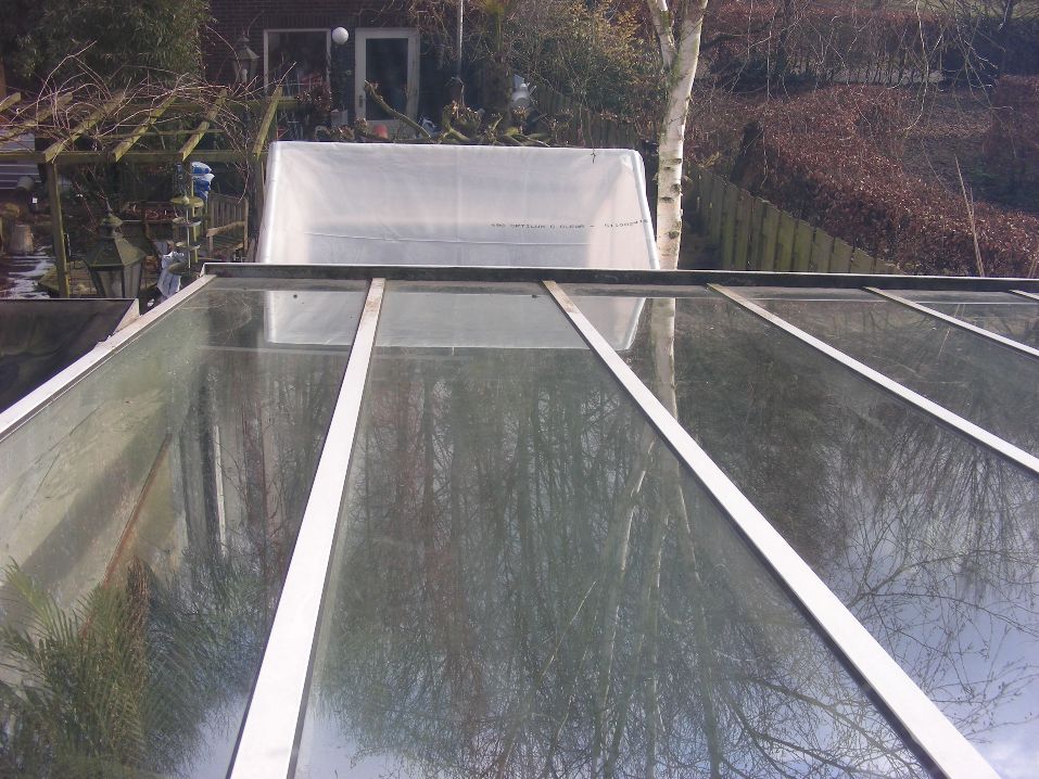 Afgelopen week hebben we nylon gespannen tegen de reiger, omdat deze steeds in de vijver zijn behoefte kwam doen. Ook hebben we een begin gemaakt om de planten in de serre een plaats te geven buiten in de tent of nog in de serre.