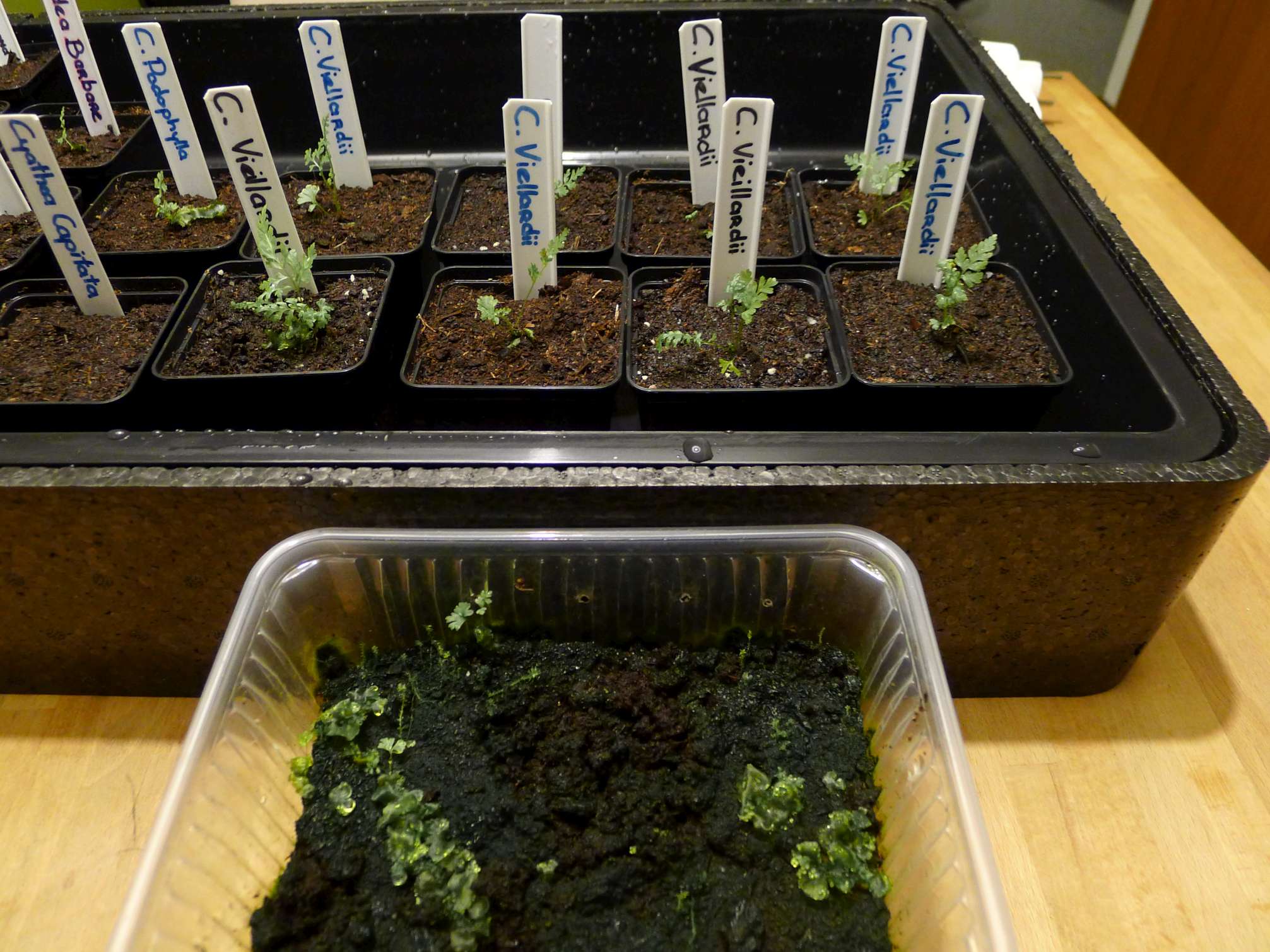 Enkele soorten hebben mijn brute gestunt tot nog toe overleefd en beginnen zowaar al op een klein varenplantje te lijken :o