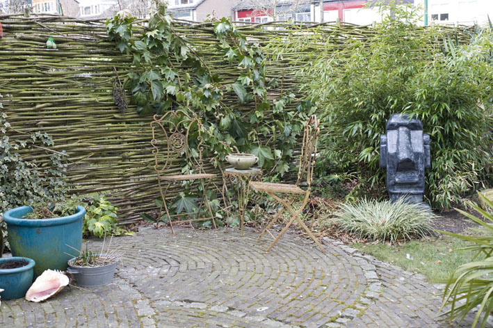Gisteren weer heerlijk in de tuin gewerkt, nu een stukje aangepakt waar een enorme composthoop lag en verder was het een enorm rommelige hoek waar 2 kruiwagens en nog meer troep stond. Dit stuk is deels gemeentegrond vandaar de wateraansluitingen en putten in de tuin, die willen we uit het zicht hebben. We hadden al een muurtje van stenen gestapelt maar nu hebben we een groot gat gegraven voor dat muurtje, daarin de hele composthoop begraven en weer een laag grond erop. Onze verhoogde border leunt nu tegen dat muurtje aan. Verder bij datzelfde stukje een houten pad gelegt. En een paar varens en een bamboe nigra verplaatst.