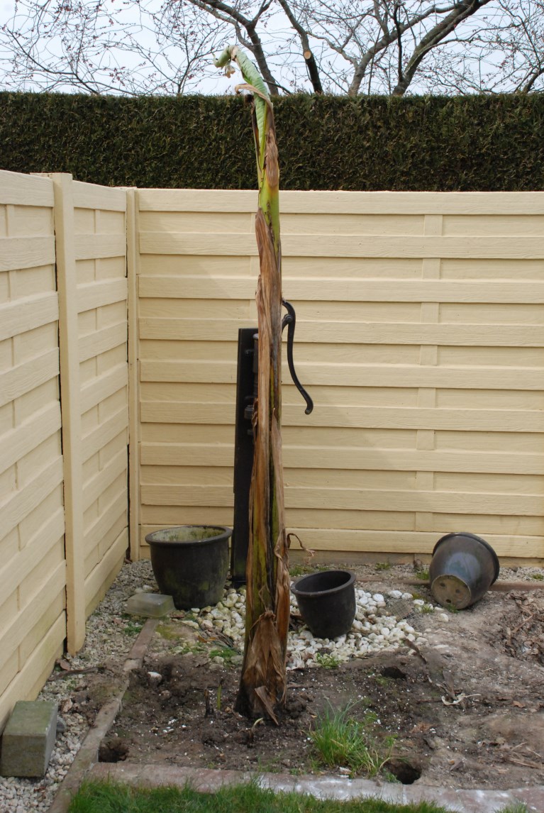 Al mijn andere Basjoo's spit ik uit en heb deze sedert 2 dagen ook in volle grond gezet,volgende winter denk ik eraan om zeker de lichtslang terug te gebruiken voor de banaantjes,de ene zegt veel werk en niet nodig,je kan ze laten afvriezen tot aan de grond en terug laten opkomen... ikzelf heb het eens zo geprobeerd en is goed meegevallen,stam is nu 1m95.