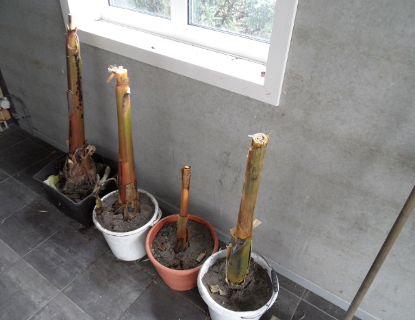 Joep,terugsnijden doe je tot op het gezonde weefsel,je moet dus een fris tot lichtgroene sigaar zien zitten net zoals op de tweede foto,mijn musa's zijn allen in volle grond uitgeplant wat gisteren gebeurt is en was toch wel een surieus karwei,wat betreft het verschil tussen basjoo en sikkimensis kan je herkennen aan de dikte van het blad,sikkimensis heeft dikker blad dan de basjoo en voelt leerachtig aan.