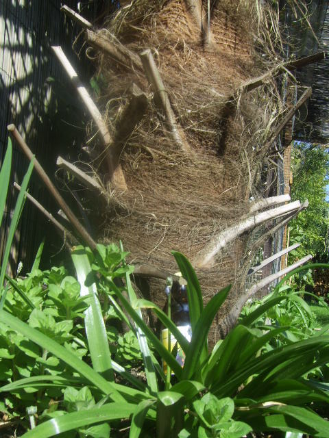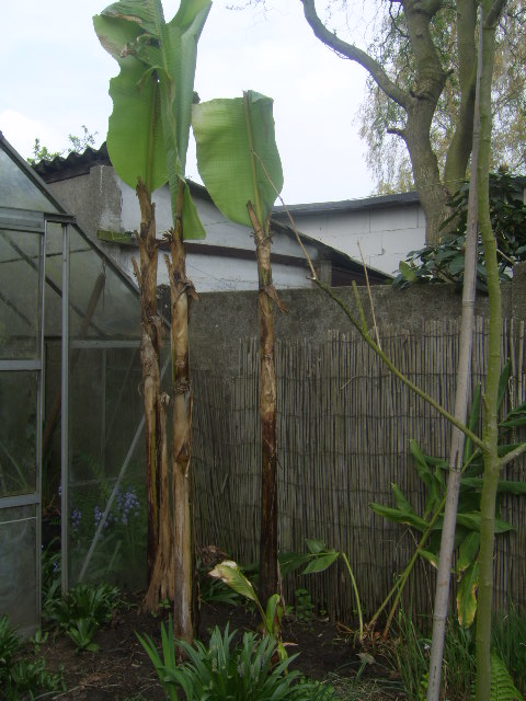 deze basjoo zit al 3 jaar in volle grond, ik heb ze altijd met lichtslang en noppenfolie warm gehouden tijdens de winter en een dikke laag bladeren aan de voet.