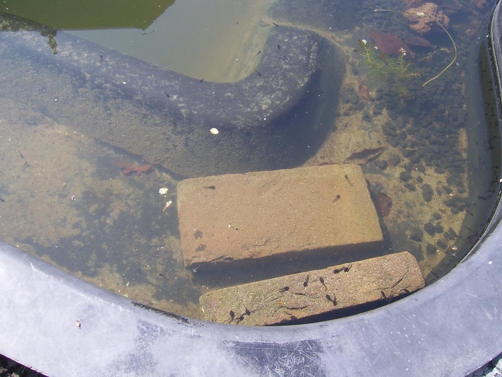 In die vijver begint het ook volop te leven: massa's kikkervisjes zwemmen rond, waterlelie heeft het wateroppervlak bereikt, snoekkruid, vederkruid enz. lopen uit,...