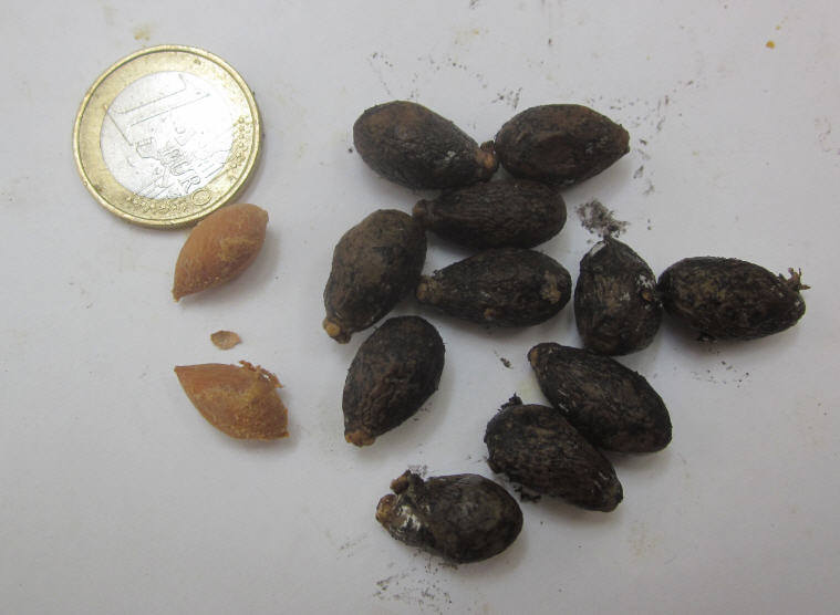 De zaden ervan, de zaden zijn met schil groenig van kleur: