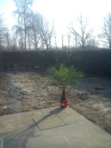 Ik hoop dat het echt tot een jungle zal uitgroeien er zitten ongeveer 55 vaste planten in struikjes, klimmers, grassen, hosta's, 3 x chamaerops humillis. Ik hoop dat het een echt spektakel zal geven van kleur ik toon jullie de foto's als alles wat begint te groeien en te bloeien.