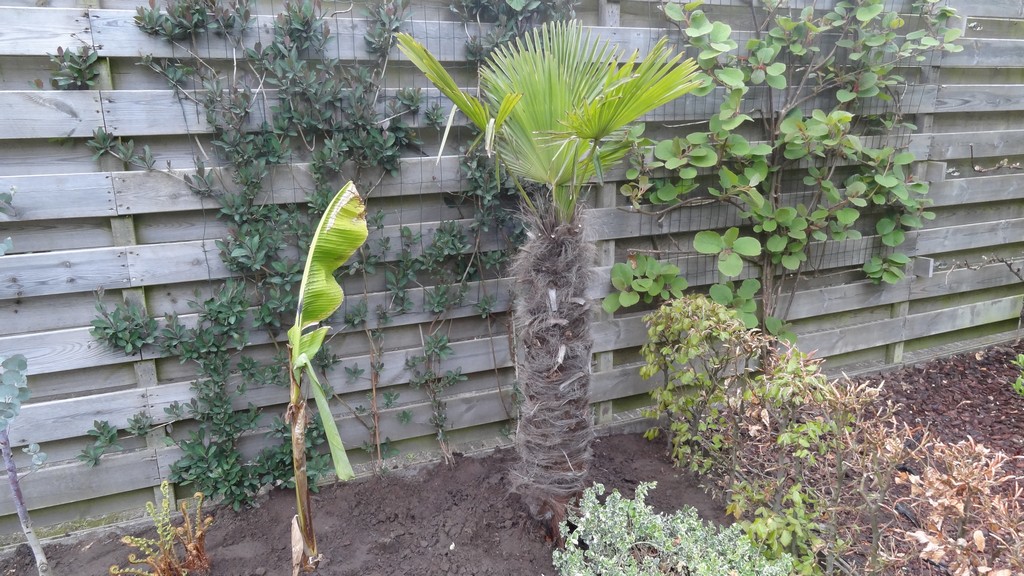 vandaag bij het tuincentrum zag ik een trachycarpus fortunei staan met een stammetje van 120 cm en kon het niet laten om hem mee te nemen. Volgens mij een goede koop, wat jullie? Hij heeft wel een klein kruintje...