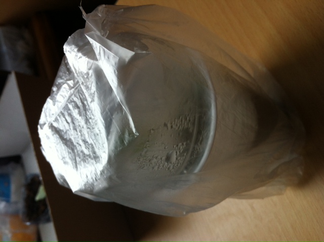 Om het binnen in de beker nog warmer te krijgen heb ik er een extra boterhamzakje omheen gedaan.