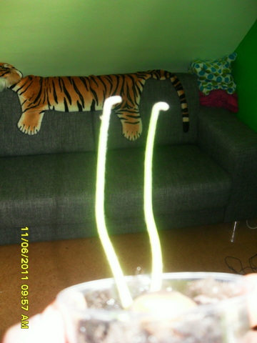 Ook heb ik nog een kleine cycas die zijn eerste bladeren gooit.