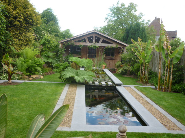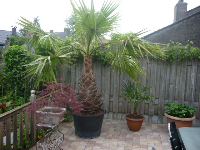 Heel mooi! Leuk om even in je tuin te mogen kijken... Wat een enorme Washingtonia trouwens (en wat een klein potje waar die in staat ) Heb je die pas gekocht of staat die al lang in die kleine pot?