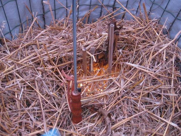 van het stro opzij duwt, bij hogere temperaturen en goed ingepakt bij slechte ventilatie