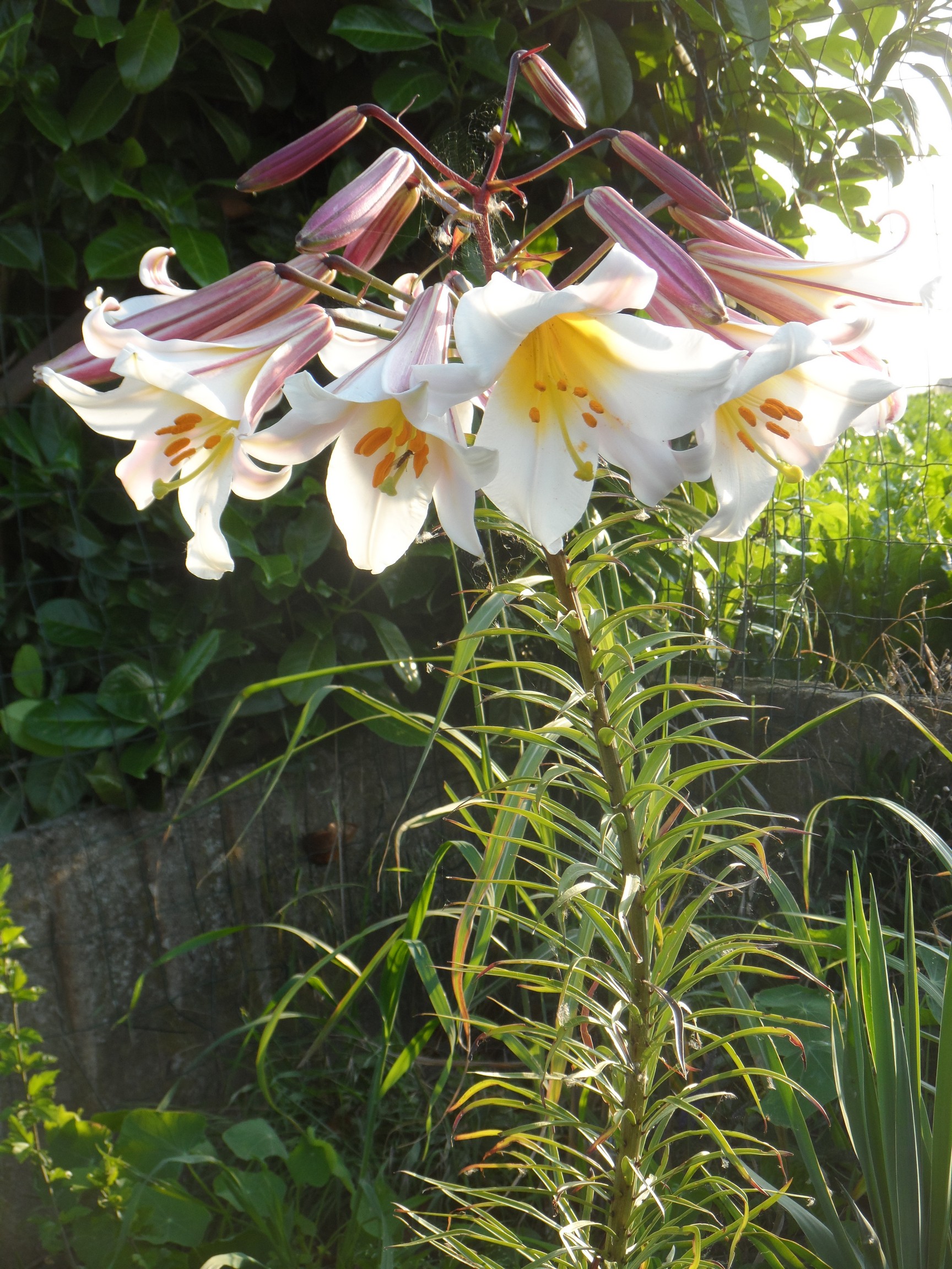 De Jasminus staat in volle grond, tegen een muur. Klimmend op gewone draad. Na de winter was alles bruin. Maar nieuwe scheuten kwamen vlug door en heb zelf niet hoeven snoeien. Heeft een enorme groeikracht en op 1 jaar volle grond tot bovenaan de muur. Als voeding enkel wat koemestkorrel en vitaminen voor klimplanten.