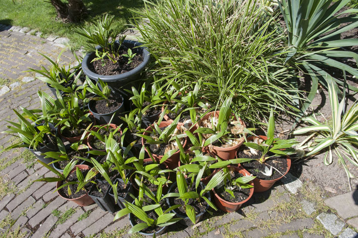 De groei kwam voor veel planten erg traag op gang en voor sommige zelfs te laat.... we hebben 1 trachy verloren en wederom weer 3 af moeten zagen, 2 kleintjes die weer groeien en 1 van onze grotere trachy's die we vorig jaar al hadden afgezaagt hebben we weer afgezaagt, hij groeit amper....De langste en dunste trachy ziet er niet uit en groeit nog steeds niet. Een hopeloos trachy jaar, daarintegen groeien de bamboes als nooit tevoren!