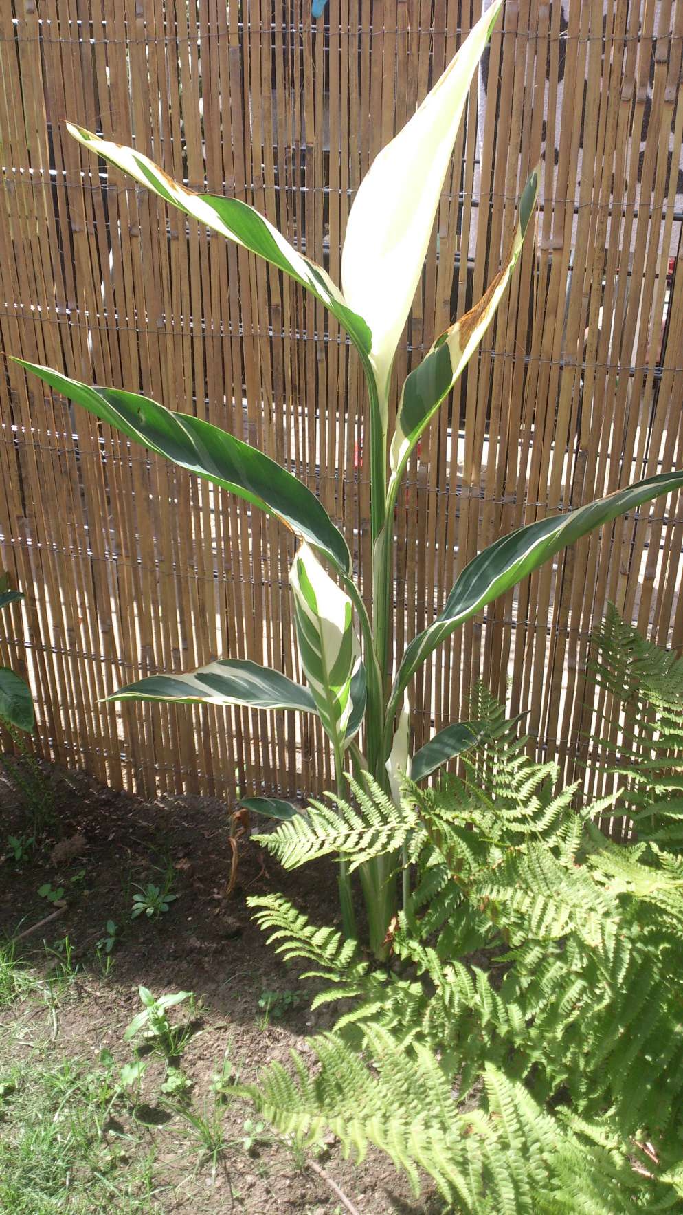 De canna stuttgart heeft 1 heel wit blad met een klein streepje groen.