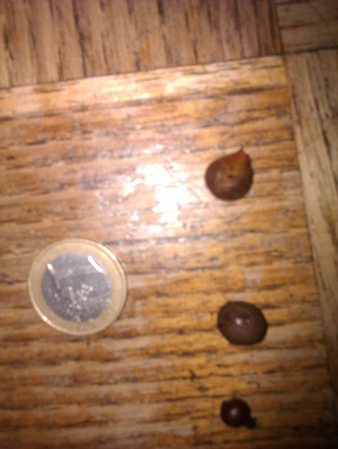 1 soort rood en is iets groter dan de Whasingtonia robusta, 1 soort is groter en bruin-grijs en rond en 1 is nog groter en loopt onder iets spits toe ( als een diamant) zie foto