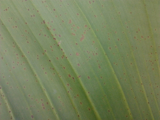 1 van mijn 2 Musa Sikkimensis heeft al het blad vol met rood-bruine stippen, is dit normaal? Mijn andere Sikkimensis heeft er geen last van.