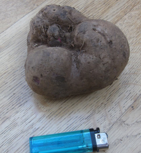 Als je een stukje vel ervan afhaalt komt er de kleur rood zoals van een rode biet te voorschijn. De prijs van dit knolletje 3,30 euro. Prijs was zo hoog omdat het zeldzame knollen waren. Weet natuurlijk niet of dat waar is. Als niemand het weet dan moet het maar gaar koken met een aantal aardappels maar word dan wel duur gerecht.