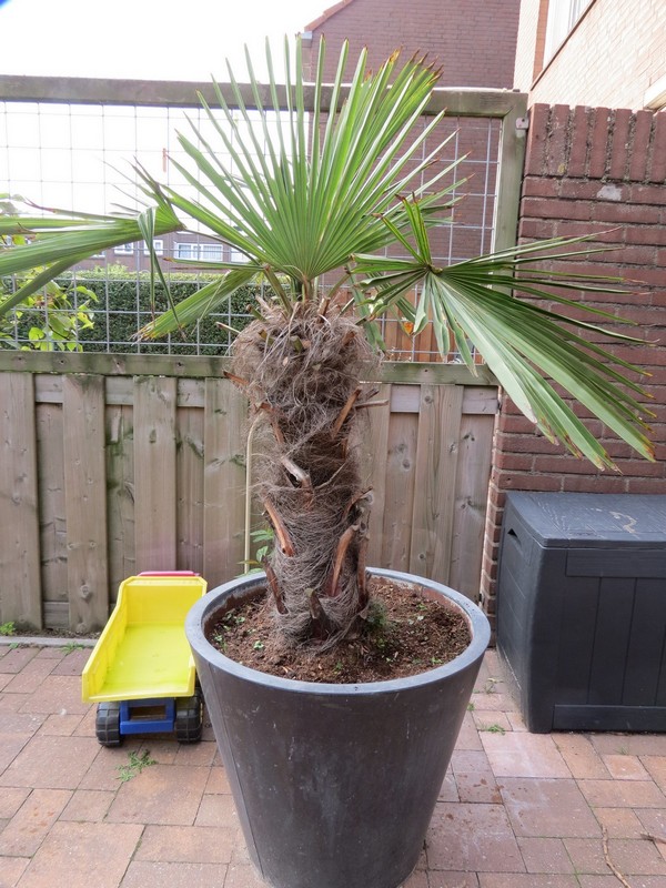 metalen potten. Ik geef ze 1x per 3 weken palmbooster.
