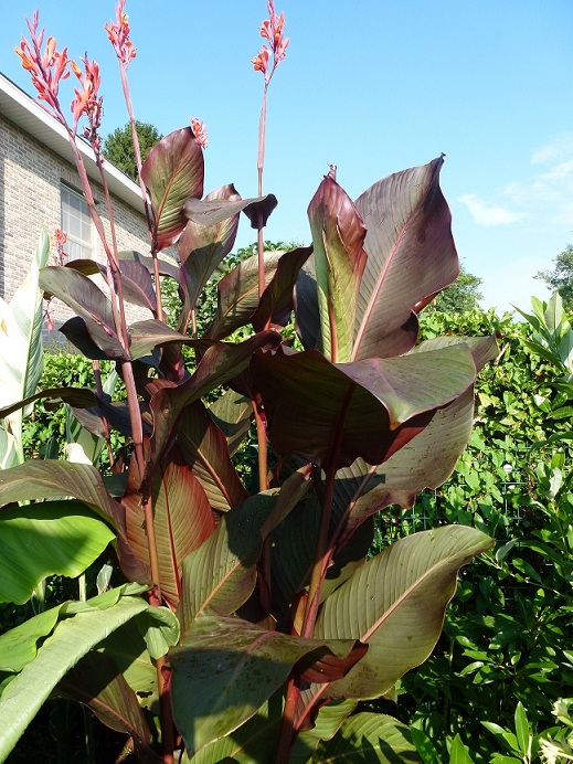 Als je goed kijkt zie je Canna russian red duidelijk meer kleur in het blad, Canna musafolia rubrum is veel donkerder qua blad. Russian red heb ik vandaag ontdekt dat deze gaat bloeien, ik maak nogmaals foto's va beide bloemen.