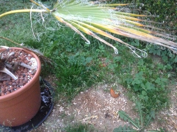 Schade door naaktslakken heb ik bij mijn palmen nog niet meegemaakt. Dat neemt niet weg dat er bij die slijmerds een groeiende interesse valt te constateren voor exotische planten. Onlangs werden 3 lage Yucca 's daarvan het slachtoffer. De slakken namen daarbij geen genoegen met hier en daar een hapje, nee de speren moesten het ontgelden waardoor nu alleen nog een stompje resteert. Sinds een paar jaar worden ook de verse bamboescheuten aangevreten, iets dat ik nog nooit eerder heb meegemaakt. Misschien moet ik de tuin toch maar wat slakkenvriendelijker beplanten met Hosta's en Ligularia bijvoorbeeld ;)