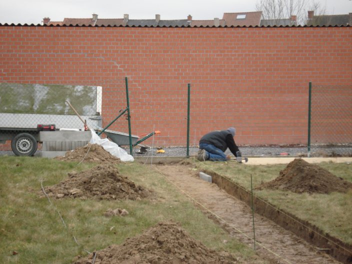 De staptegels zijn eruit, het eerste stuk graven zit erop