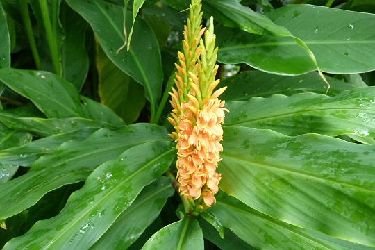 Ik ben geen specialist op dit gebied, maar naar mijn idee is dit Cautleya spicata, al ben ik niet zeker over soortnaam? De komende winter staat de kuipplant vorstvrij maar gaat volgend jaar de grond in. Alle uitlopers een tiental hebben gebloeid. Inmiddels heeft de herfstmoesson er een eind aangemaakt met 75 mm regen sinds de weeromslag het vorige weekend. Ik ben benieuwd of deze gemberachtige stand zal houden in de tuin. Een eerder experiment met verschillende Hedychiums is mislukt. De enige selectie die zich heeft weten te handhaven is ssp. densiflorum 'Stephen' die echter nog maar zelden tot bloei komt en dan nog bij voorkeur in natte zomers zoals in 2011 en 2012.