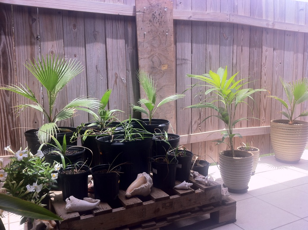 We wonen hier nu een jaar en zijn al een jaar bezig met het verzamelen van palmen en tropische planten. Dit is waarschijnlijk niet het huis waar we blijven wonen, dus vinden we het leuk om palmen zo klein mogelijk te kopen/vinden en ze groot te kweken tot we een eigen huis met grond hebben.