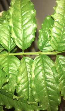 De blaadjes zijn ook op dezelfde manier gekarteld en als ik naar het takje kijk, zie dat dat de takjes net zo gevormd zijn als mijn plantje met hun karakteristiek platte kantjes...