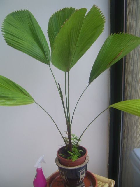 Ik vraag mij soms af of het met moeilijke palmen, de exoten, de moeite loont om steeds vanuit zaden te vertrekken. Je weet nooit of de zaden vers zijn maar prijzig zijn ze meestal wel. Dus heb ik eens geprobeerd met Licuala's uit Borneo te kopen en dat was een aangename ervaring. Nu, 3 Johannesen heb ik niet nodig en om dat aan mijn werderhelft verkocht te krijgen... dan ziet ze er helemaal zo uit: :o haha.