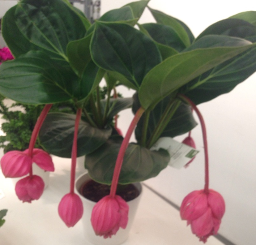 Ik heb deze Medinilla gezien op de veiling in Aalsmeer, en ben benieuwd welke soort dit is. Hier onder een foto. Het enige verschil met een gewone Medinilla is dat de kleur van de bloem veel rozer is.