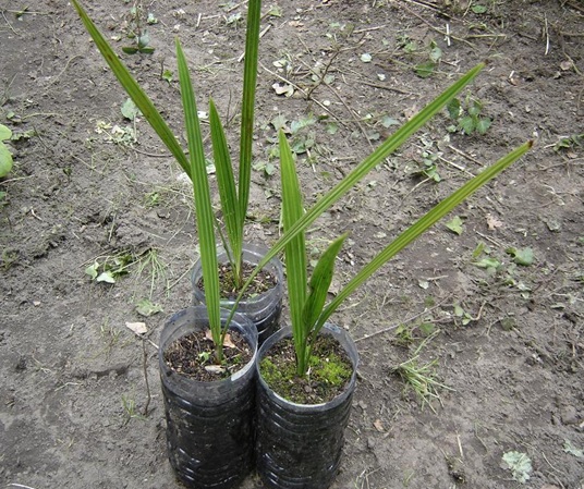 Ik moet er alleen wel aan toevoegen dat het niet goed is voor palmen om de wortels aan licht bloot gesteld te hebben. De wortels zullen dan ook niet tegen het plastic aangroeien aan de zijkanten omdat wortels licht mijden. Dit heeft tot gevolg dat de groei uit de plant gaat en in deze PET flessen zelfs dood kunnen gaan. De wortels blijven namelijk alleen in het midden zitten en groeien niet in de breedte uit.