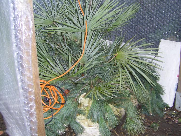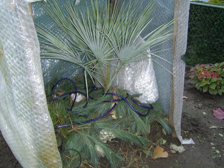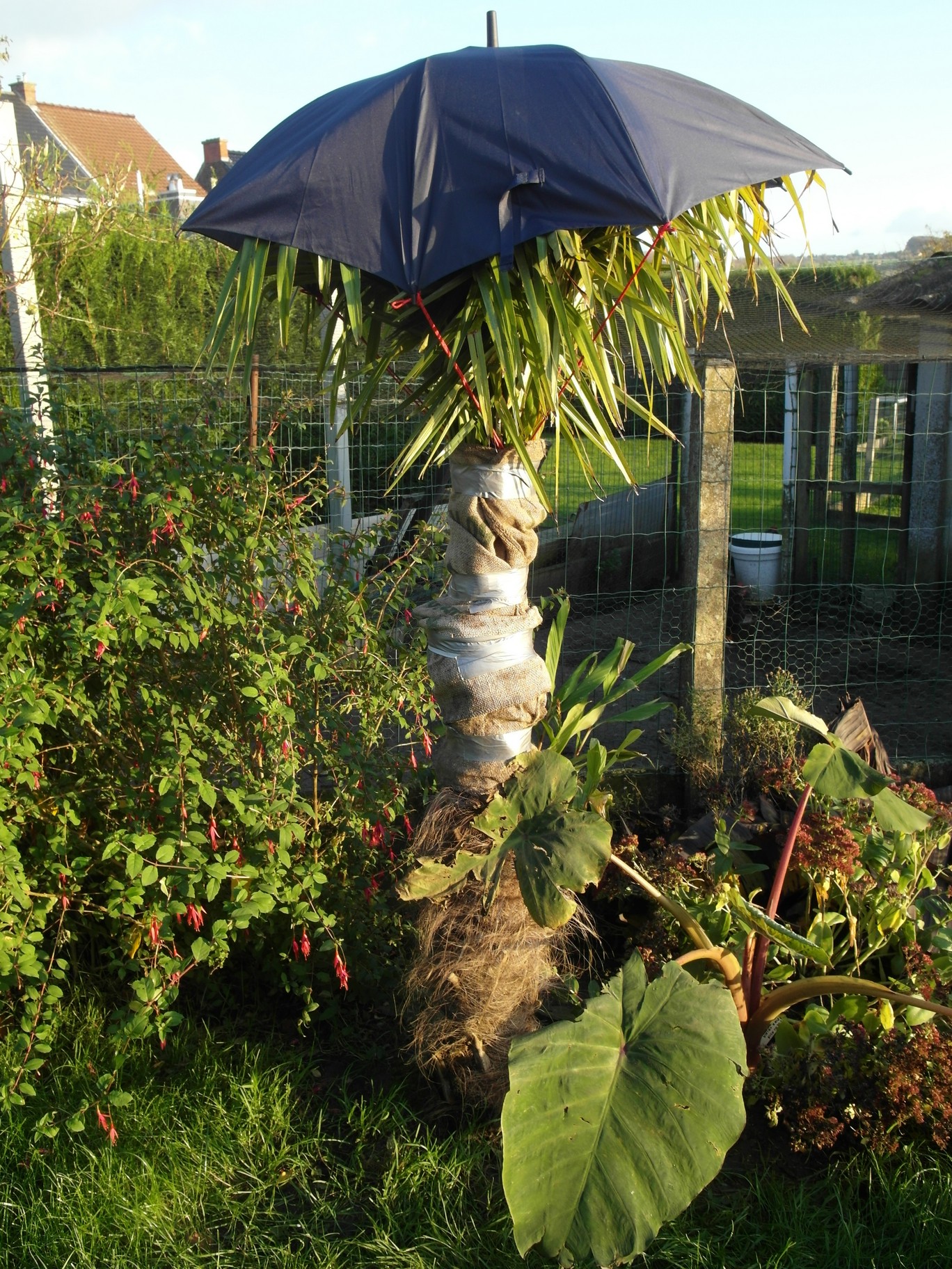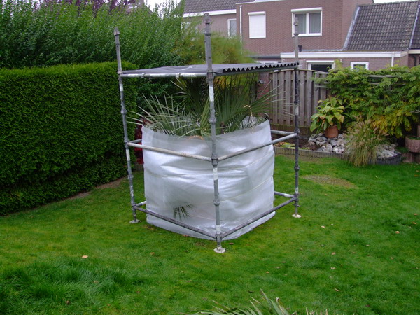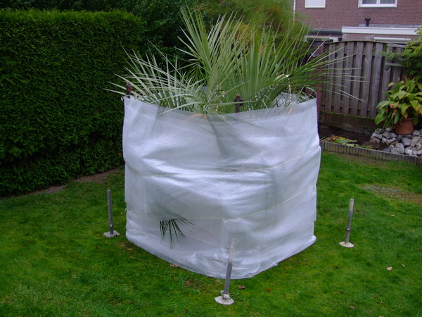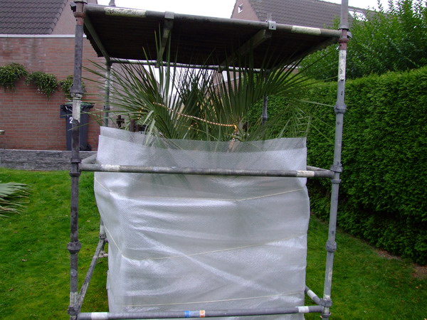 Hier de bescherming die ik deze winter ga toepassen voor mijn trachy's in volle grond.