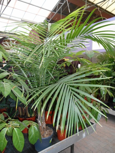 Was een tiental jaren geleden deze fraaie vederpalm nog een vrij algemene verschijning in de tuincentra, inmiddels komt ik ze zelden meer tegen. Vandaag ontdekte ik een solitaire driepitter (toef) voor een leuke prijs. Wegens gebrek aan geschikte overwinteringsruimte heb ik deze palm laten staan. Ik schat dat een minimum van 5°C is vereist, zodat verbljf in de de koude kas geen optie is.