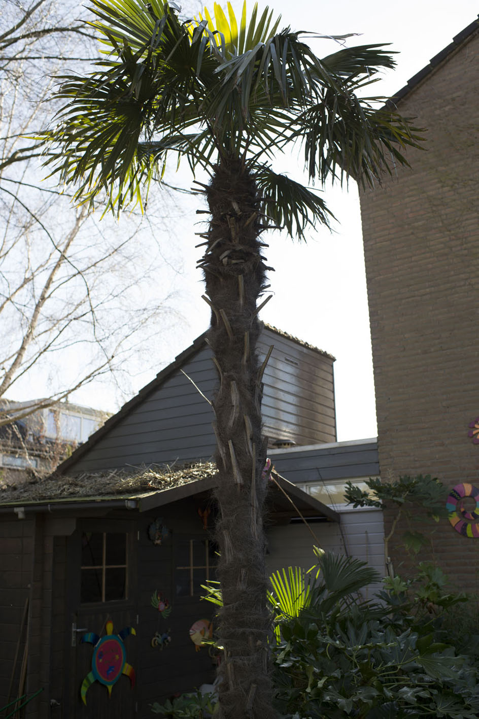 Van de totaal 4 grote trachy's die we 4 jaar geleden hebben verhuist, leeft er nog maar 1. Einde van de zomer hebben de lange slungel uit de grond gehaald, hij bleek niet geworteld te hebben, weer een trachylijk :? Verder hebben we ook de bamboepoort eruit gehaald en vervangen door een groot smeedijzeren hek. Een paar weken geleden is er namelijk een grote hond in onze tuin terecht gekomen en heeft 5 van onze kippen doodgebeten, 1 groot drama dus we hebben direct onze tuin hermetisch afgesloten voor honden! We hebben inmiddels ook weer nieuwe kipjes ook al zit de schrik er nog goed in!