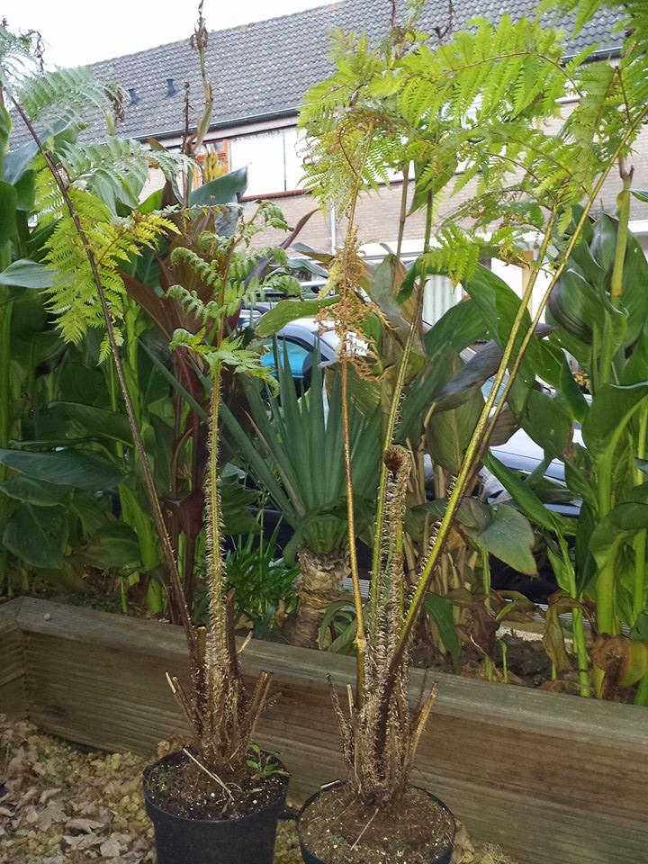 deze twee varens stonde bij de uit gang van een plante winkel met een bordje gratis met te nemen i.v.m